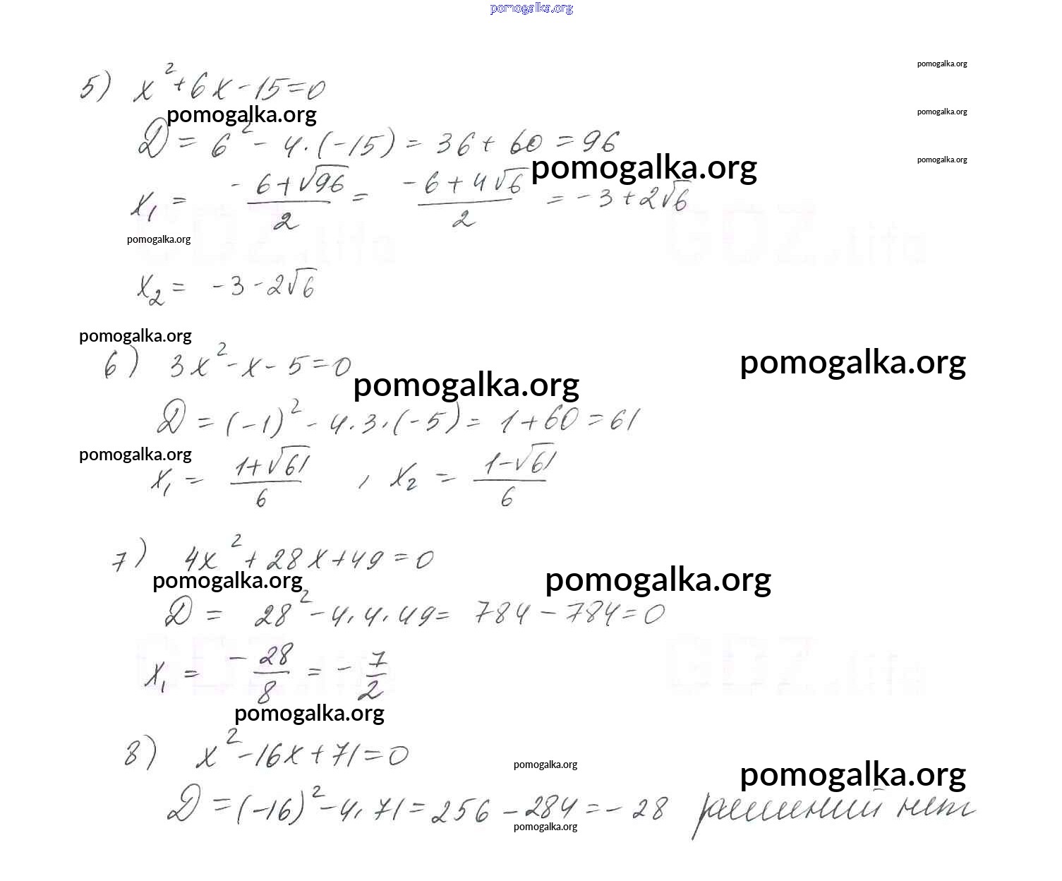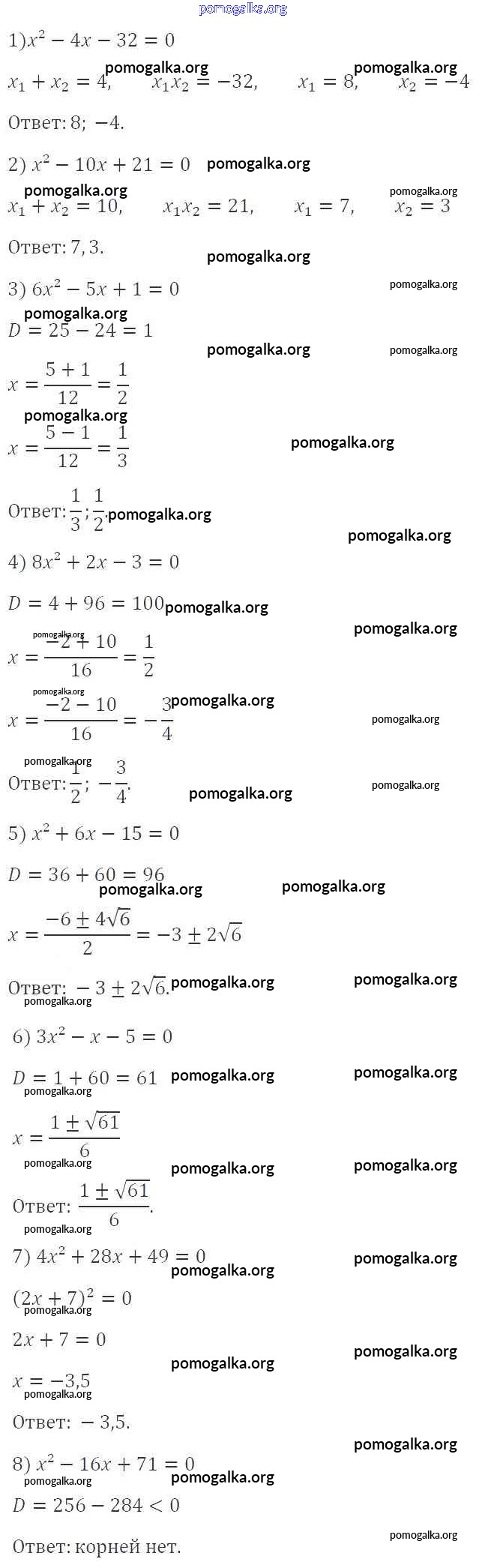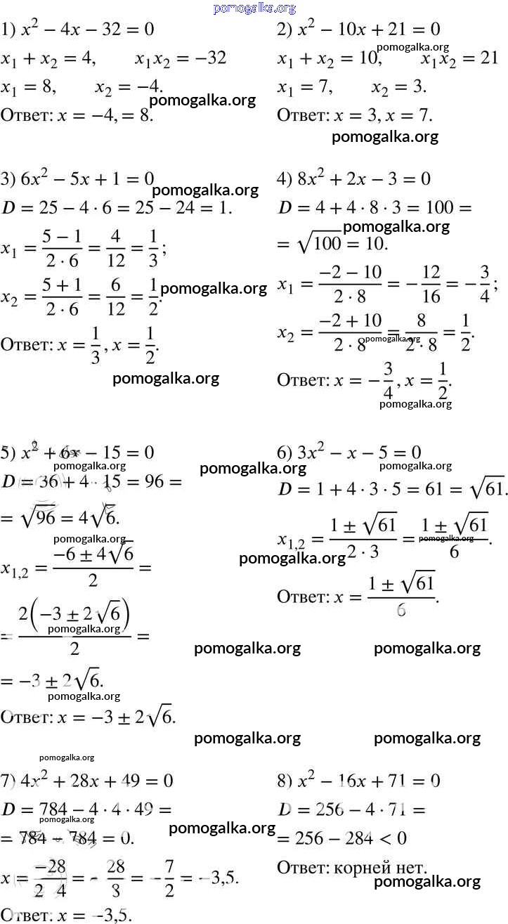 §20. Формула корней квадратного уравнения №656-704