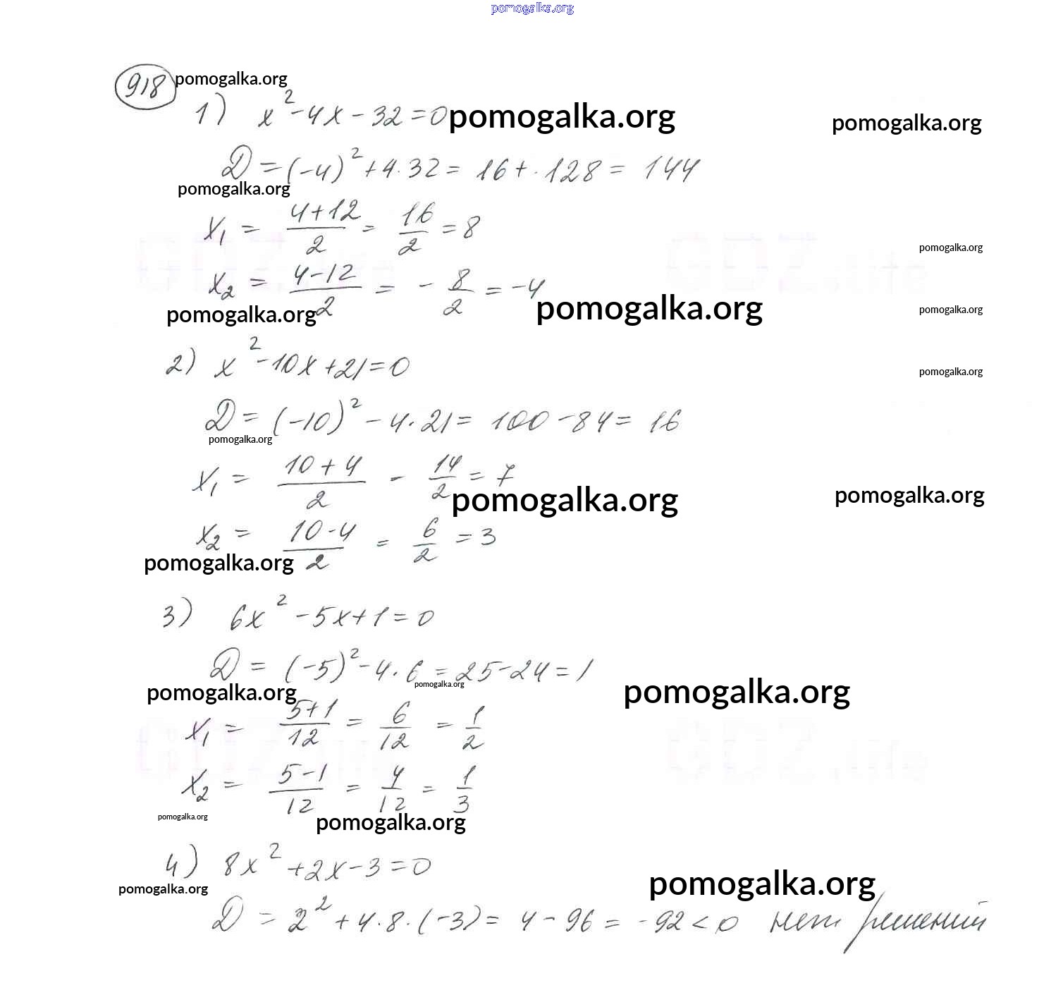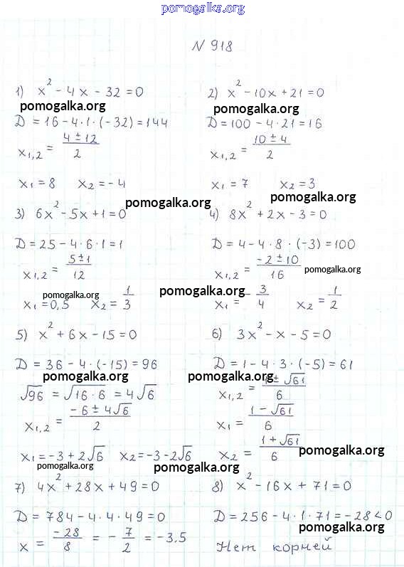 Готовые ответы - Алгебра 8 класс Мерзляк А.Г. - упражнение для повторения 918