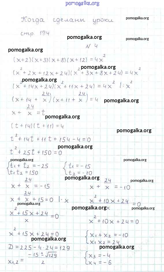 Готовые ответы - Алгебра 8 класс Мерзляк А.Г. - когда сделаны уроки вопрос стр.194