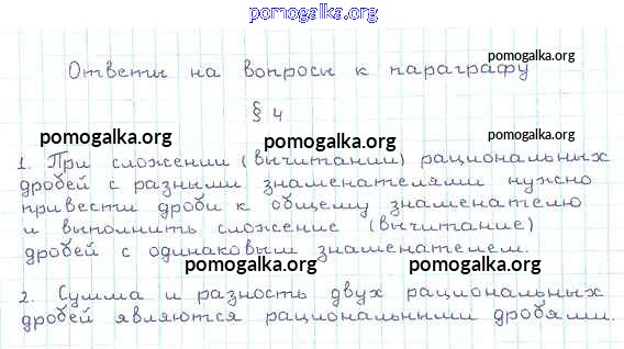 Готовые ответы - Алгебра 8 класс Мерзляк А.Г. - вопрос §4