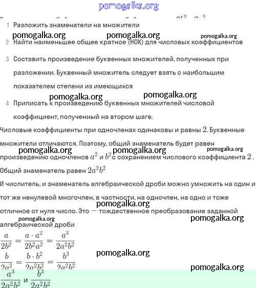 §4. Сложение и вычитание алгебраических дробей с разными знаменателями №1-56