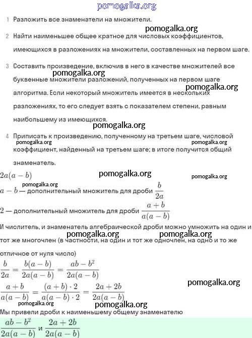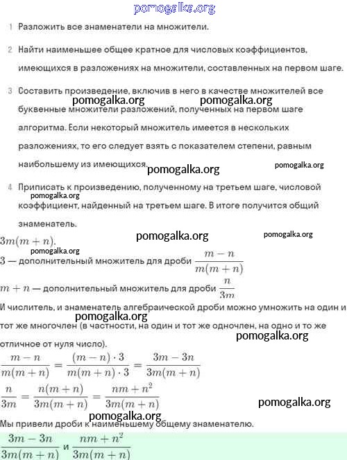 §4. Сложение и вычитание алгебраических дробей с разными знаменателями №1-56