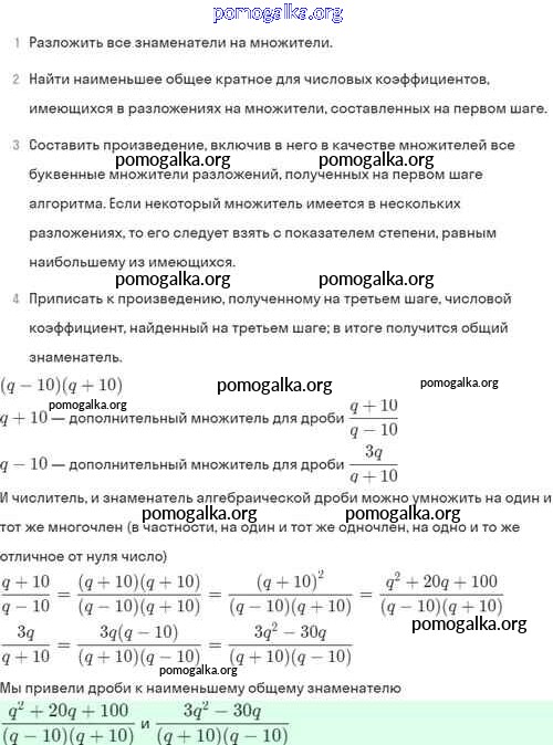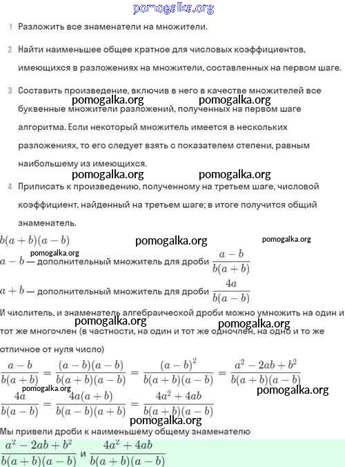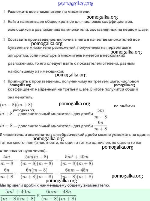 §4. Сложение и вычитание алгебраических дробей с разными знаменателями №1-56