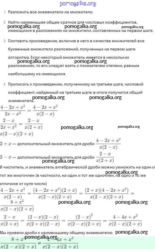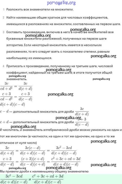 §4. Сложение и вычитание алгебраических дробей с разными знаменателями №1-56