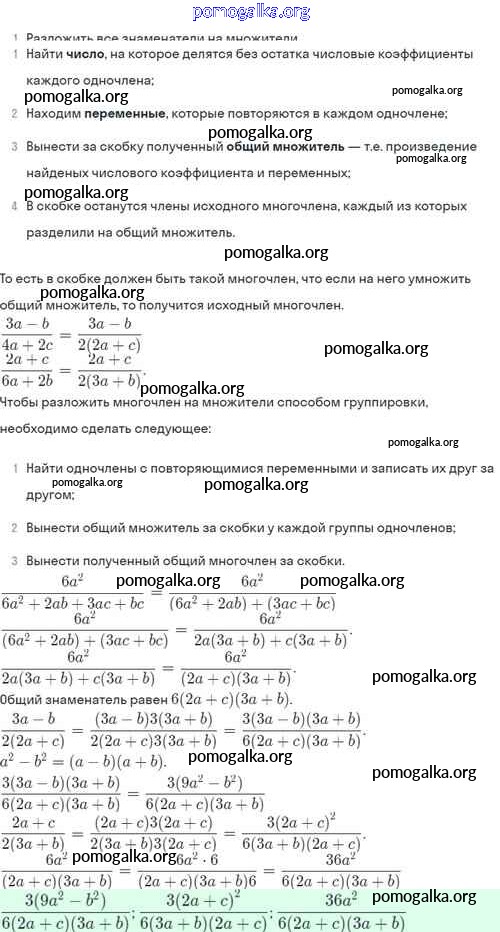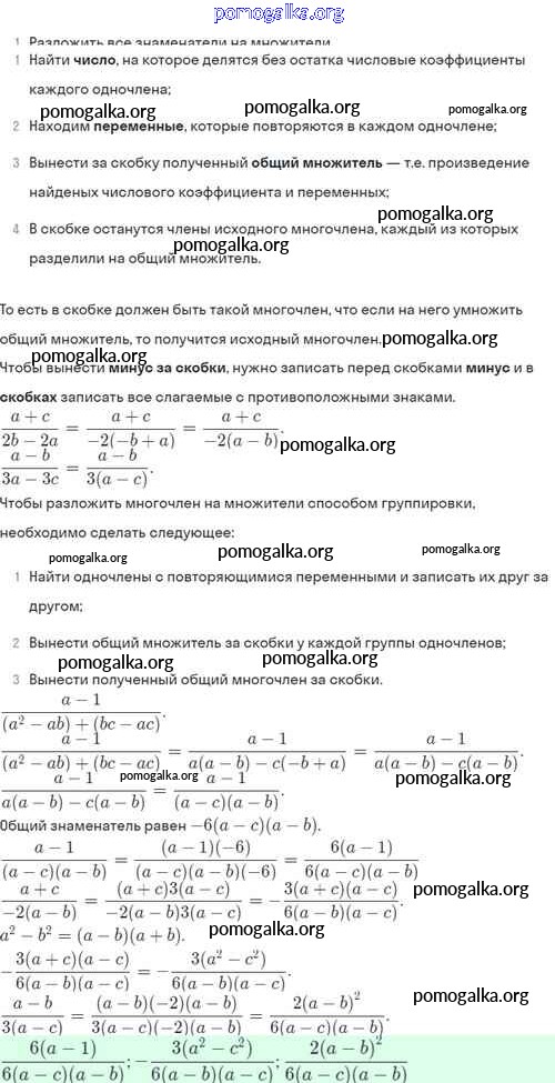 §4. Сложение и вычитание алгебраических дробей с разными знаменателями №1-56