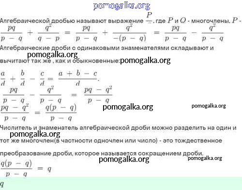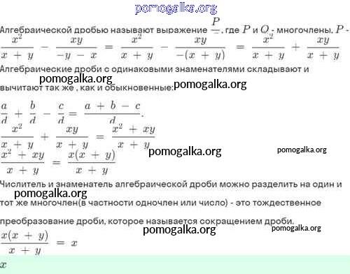 §3. Сложение и вычитание алгебраических дробей с одинаковыми знаменателями №1-29