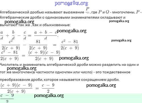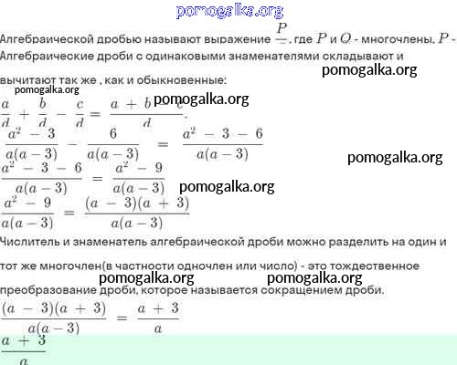 §3. Сложение и вычитание алгебраических дробей с одинаковыми знаменателями №1-29