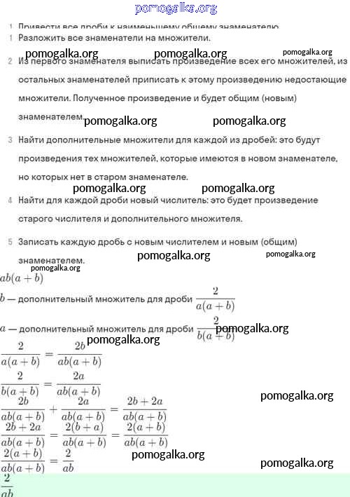 §4. Сложение и вычитание алгебраических дробей с разными знаменателями №1-56