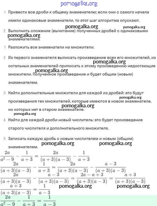 §4. Сложение и вычитание алгебраических дробей с разными знаменателями №1-56