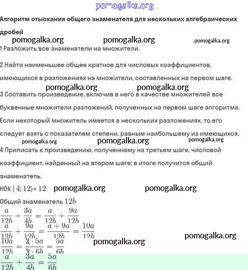 §4. Сложение и вычитание алгебраических дробей с разными знаменателями №1-56