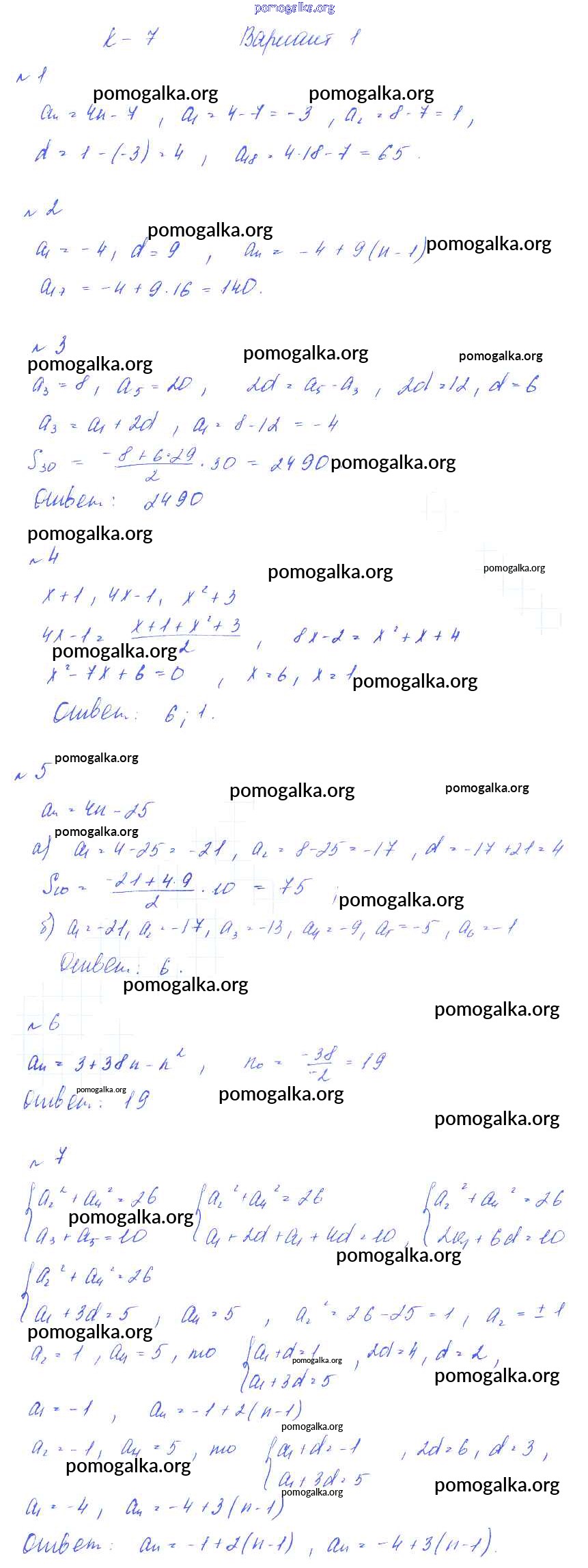 Готовые ответы - Алгебра 9 класс Дидактические материалы Звавич Л.А. (к уч. Макарычева) - кр-7 контрольная работа вариант 1