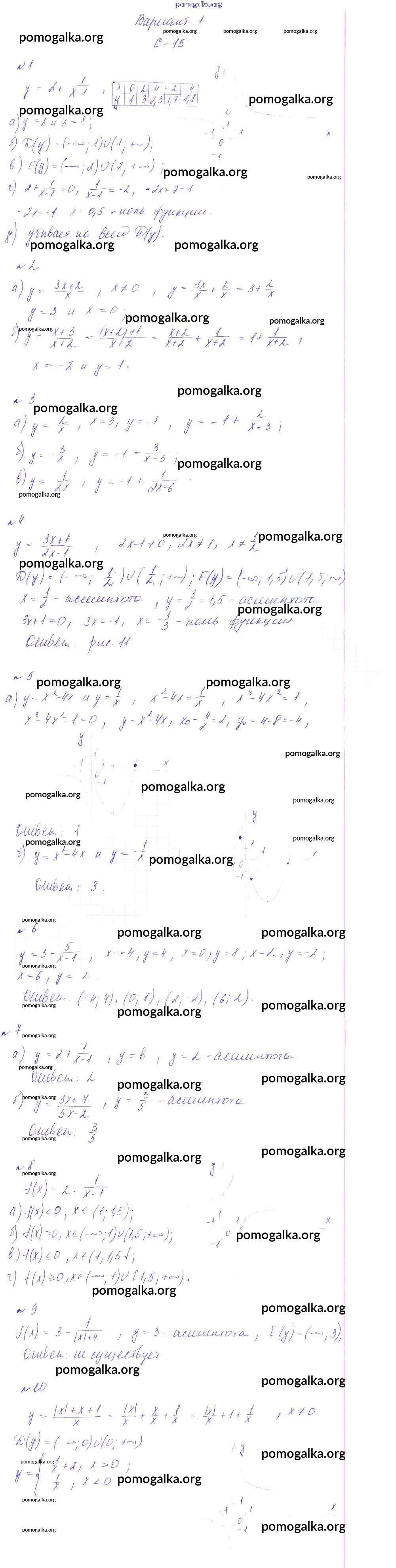 Готовые ответы - Алгебра 9 класс Дидактические материалы Звавич Л.А. (к уч. Макарычева) - ср-15 самостоятельная работа вариант 1