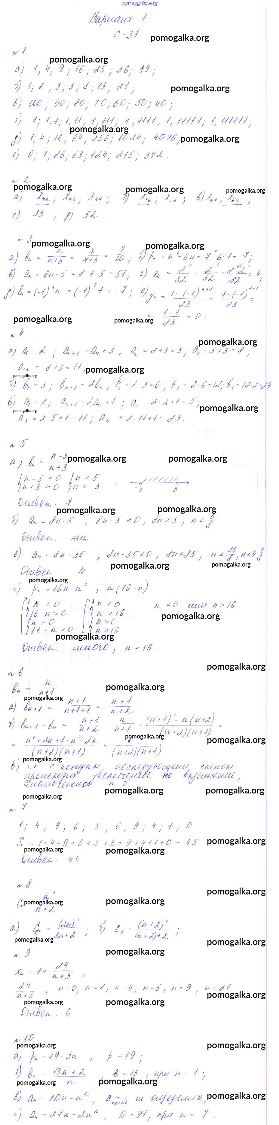 Готовые ответы - Алгебра 9 класс Дидактические материалы Звавич Л.А. (к уч. Макарычева) - ср-31 самостоятельная работа вариант 1