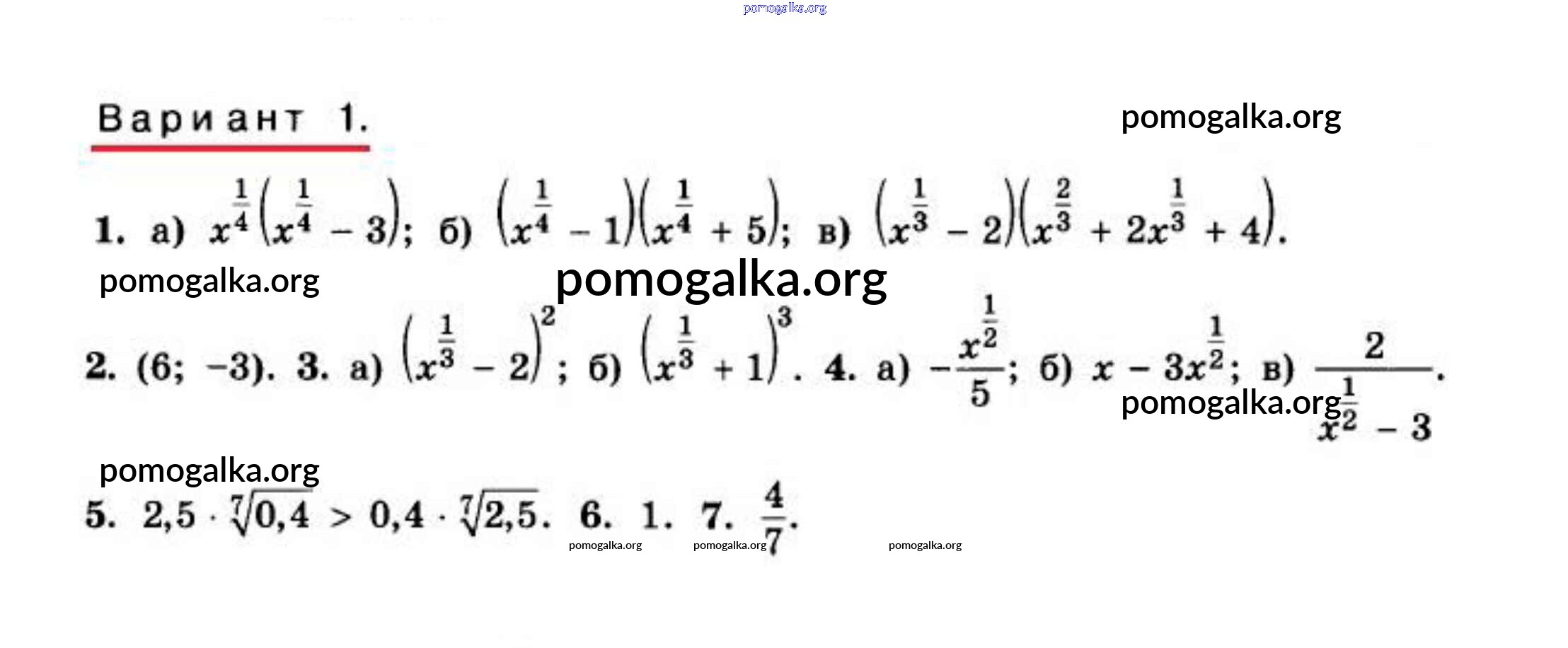 Контрольная работа 7. Варианты Подготовительный, 1-3