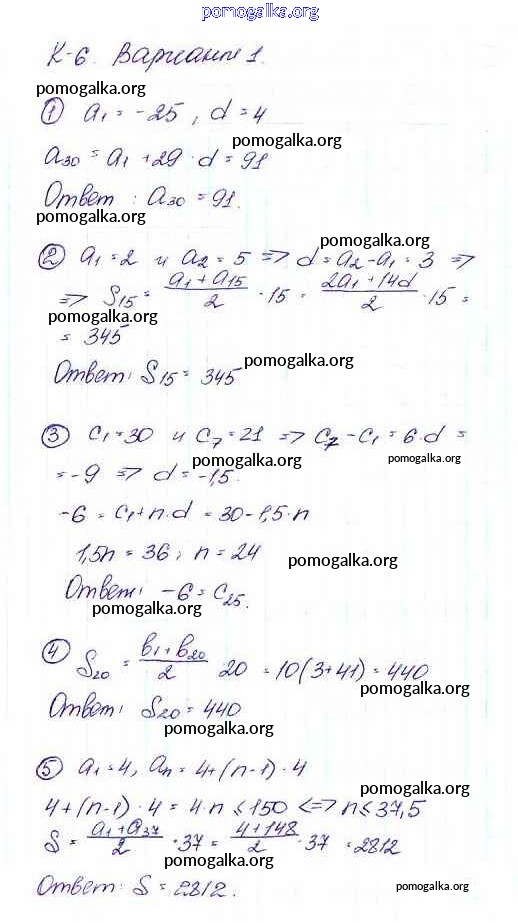 Готовые ответы - Алгебра 9 класс Дидактические материалы Макарычев Ю.Н. - кр-6 контрольная работа Вариант 1