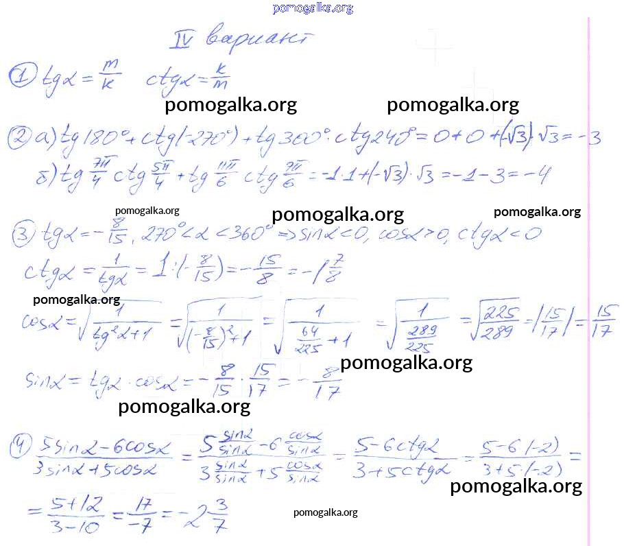 СР №26. Косинус суммы и косинус разности двух углов. Синус суммы и синус разности двух углов. Варианты 1-4