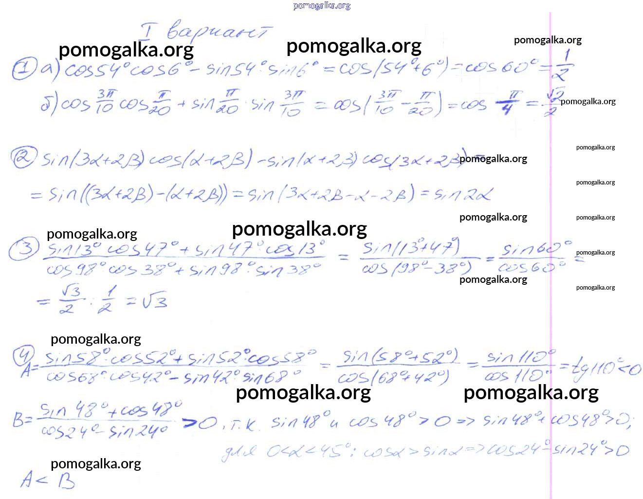 СР №26. Косинус суммы и косинус разности двух углов. Синус суммы и синус разности двух углов. Варианты 1-4