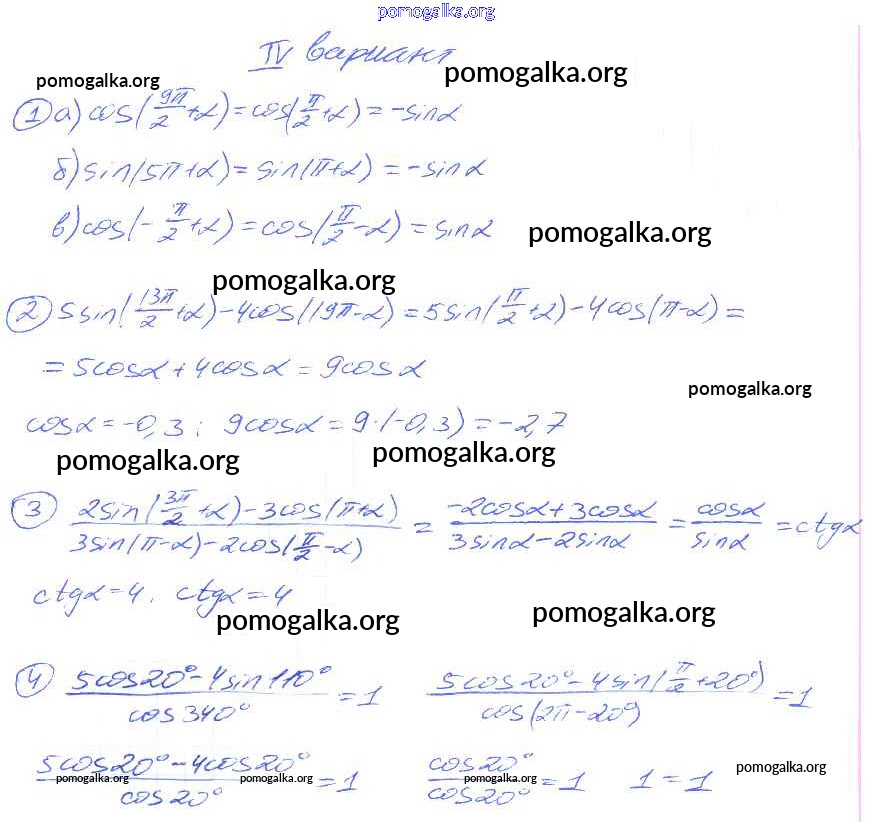 СР №26. Косинус суммы и косинус разности двух углов. Синус суммы и синус разности двух углов. Варианты 1-4