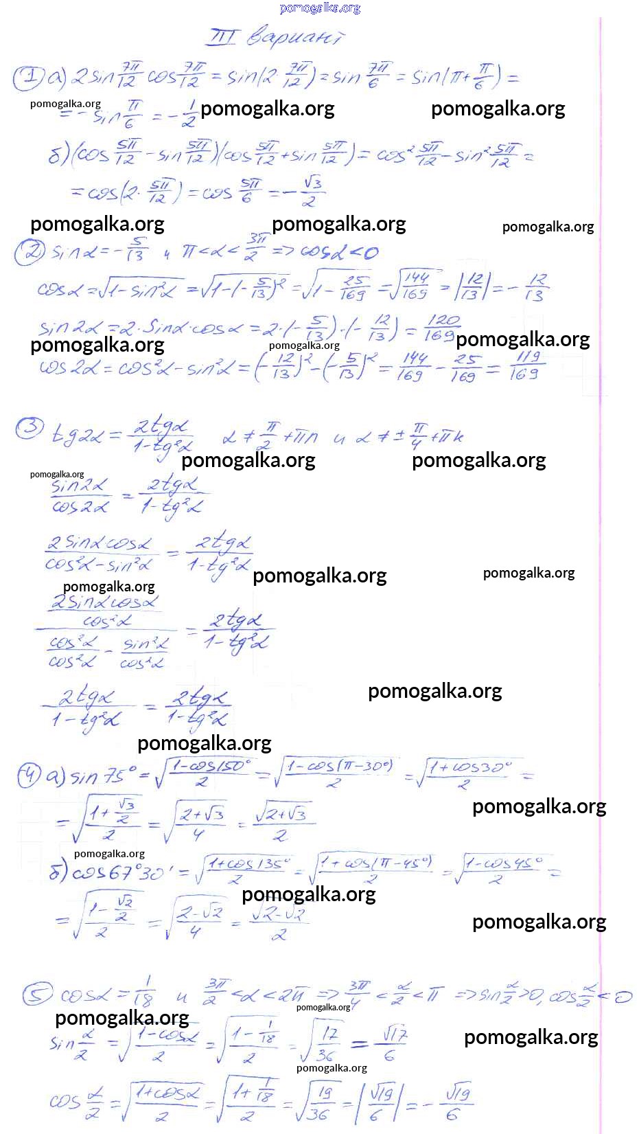 СР №26. Косинус суммы и косинус разности двух углов. Синус суммы и синус разности двух углов. Варианты 1-4