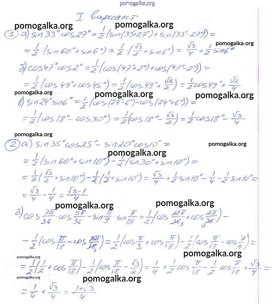 СР №26. Косинус суммы и косинус разности двух углов. Синус суммы и синус разности двух углов. Варианты 1-4