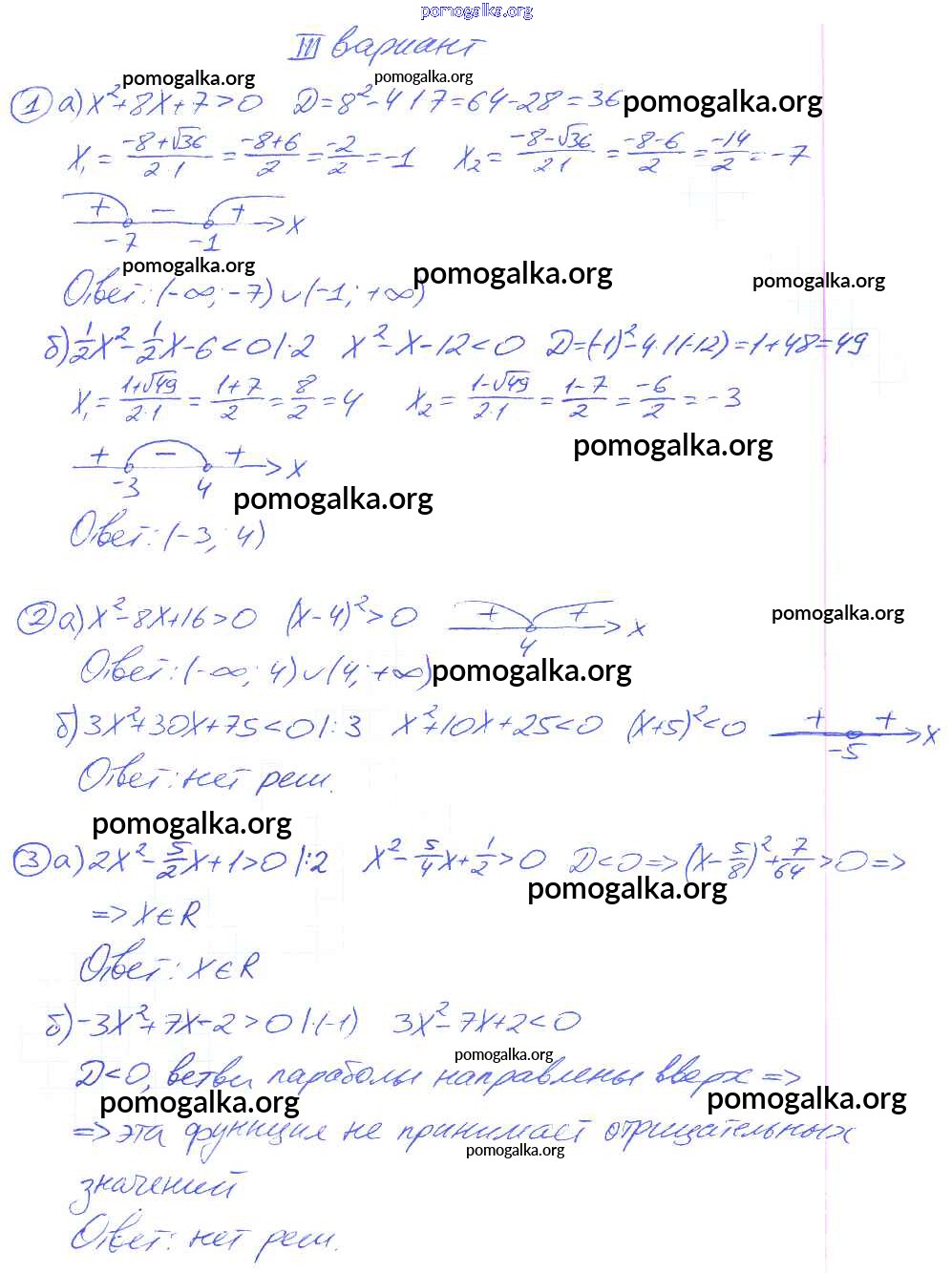 Готовые ответы - Алгебра 9 класс Дидактические материалы Потапов М.К. - ср №5. вариант самостоятельная работа 3