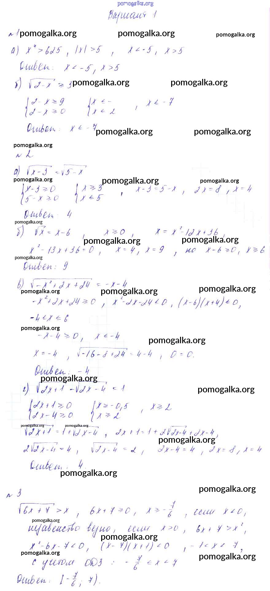 Готовые ответы - Алгебра 9 класс Дидактические материалы Зив Б.Г. - ср-11 самостоятельная работа вариант 1