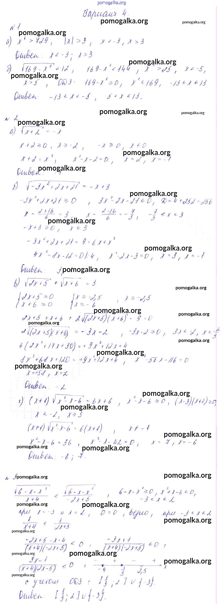 Готовые ответы - Алгебра 9 класс Дидактические материалы Зив Б.Г. - ср-11 самостоятельная работа вариант 4