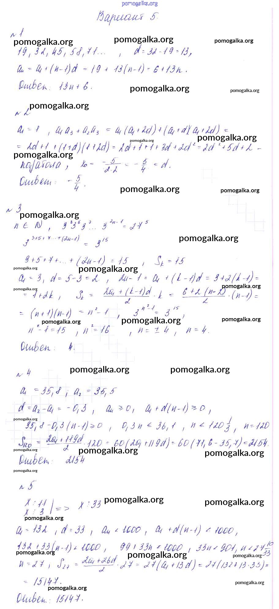 Готовые ответы - Алгебра 9 класс Дидактические материалы Зив Б.Г. - ср-17 самостоятельная работа вариант 5