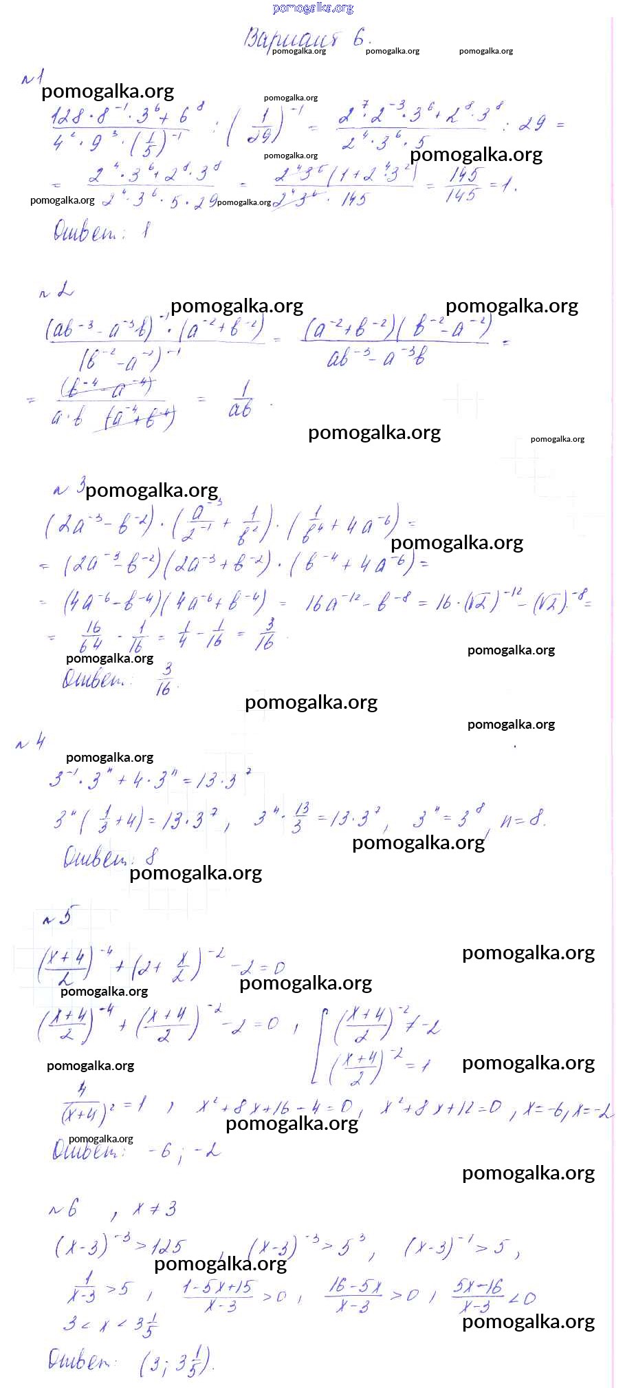 Готовые ответы - Алгебра 9 класс Дидактические материалы Зив Б.Г. - ср-5 самостоятельная работа вариант 6