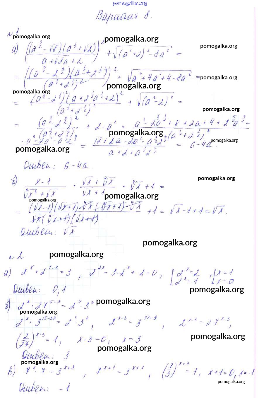 Готовые ответы - Алгебра 9 класс Дидактические материалы Зив Б.Г. - ср-8 самостоятельная работа вариант 8