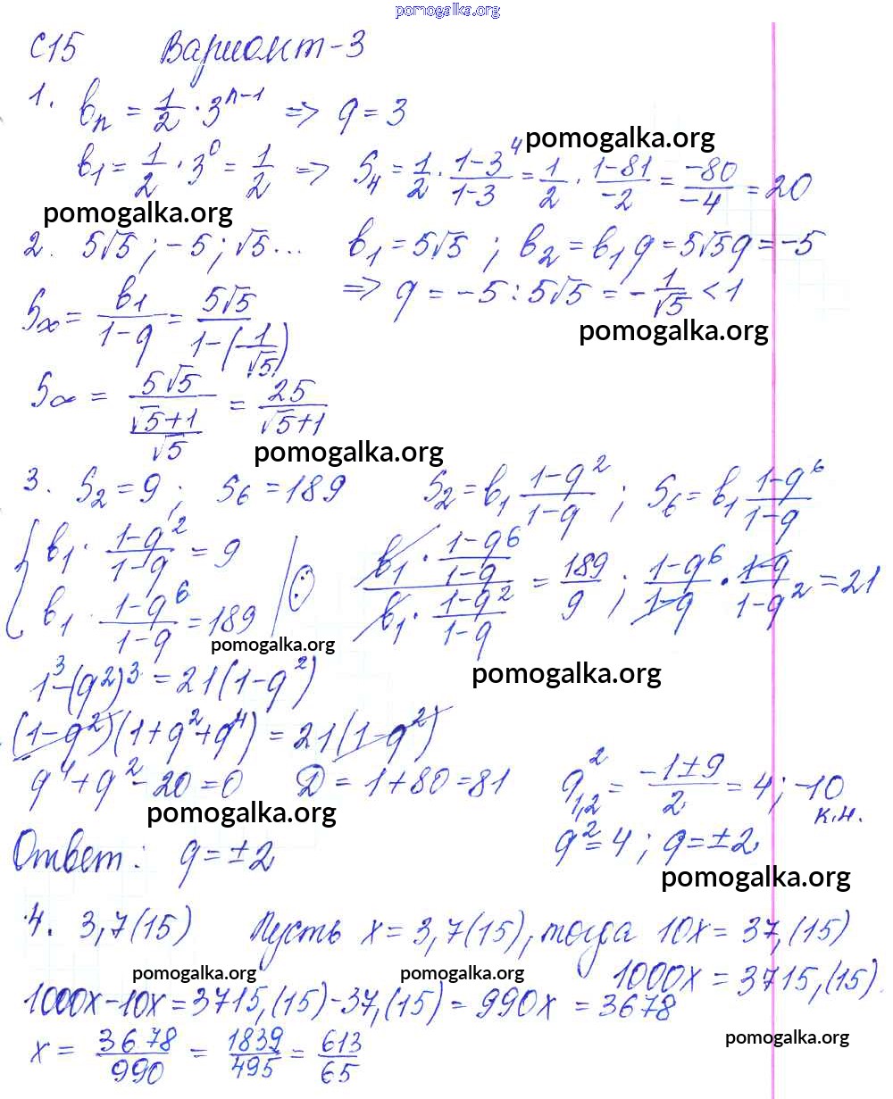 С-15. Формула суммы первых n членов геометрической прогрессии