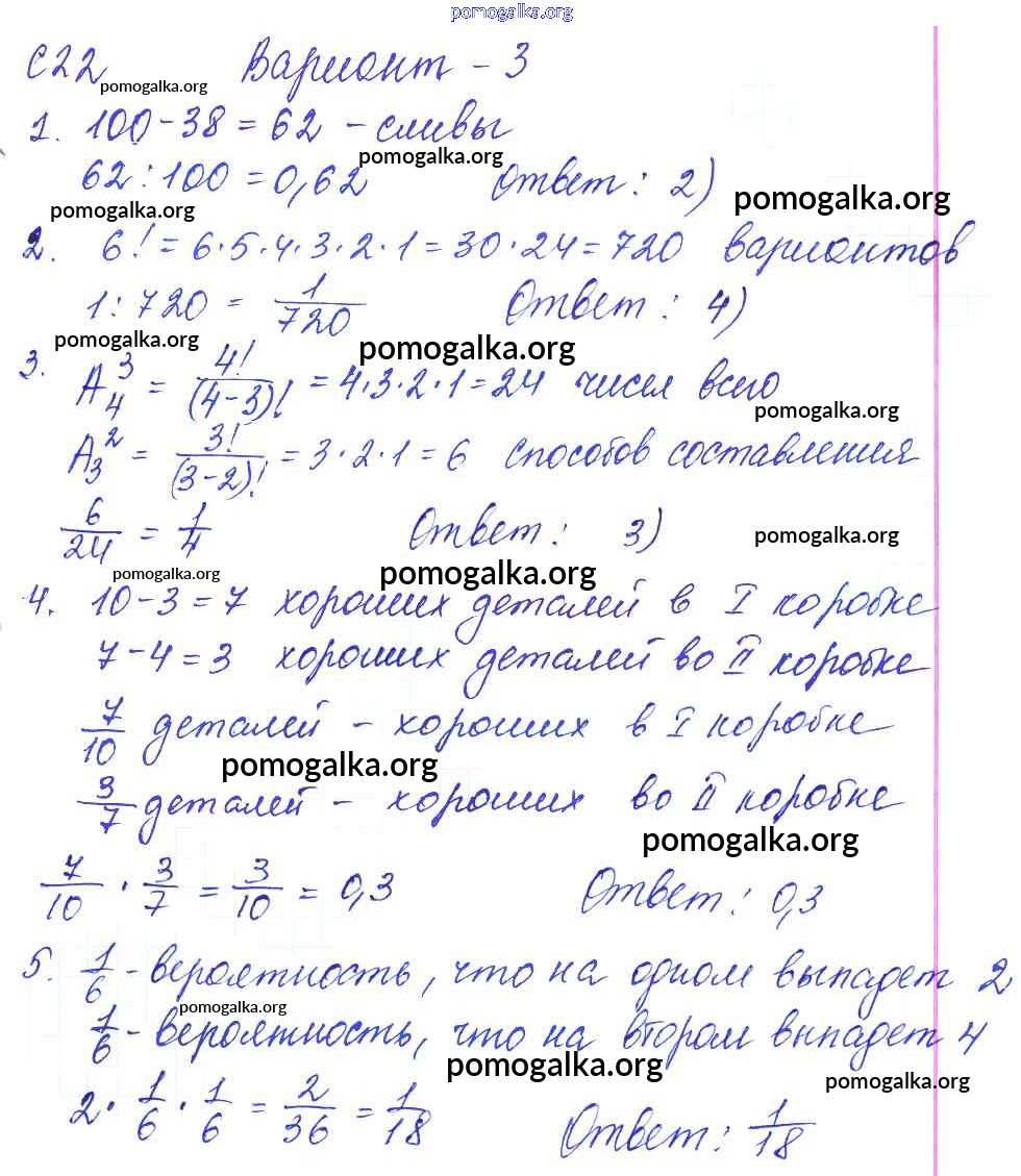 С-22. Начальные сведения из теории вероятностей