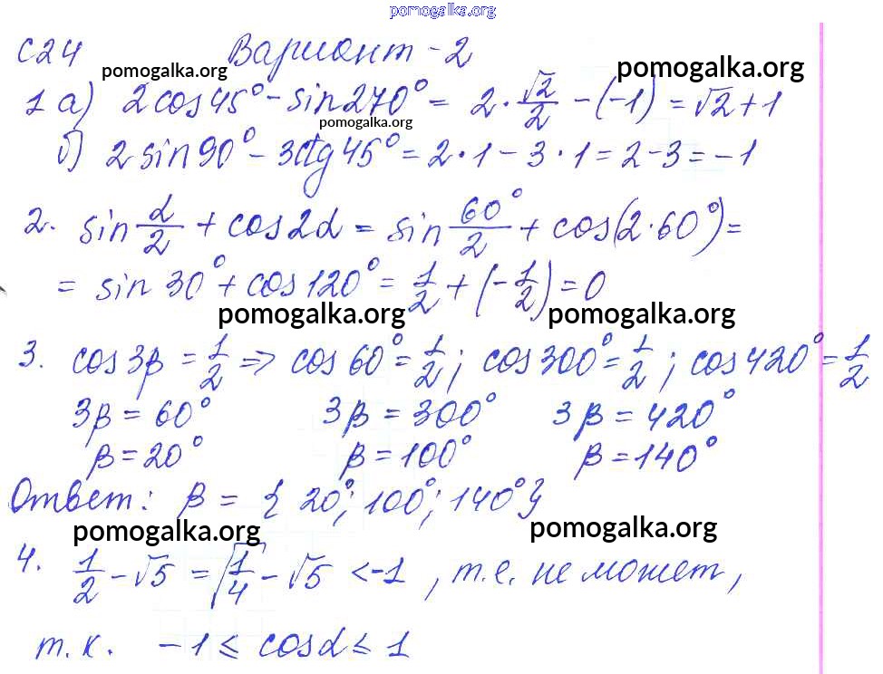 Готовые ответы - Алгебра 9 класс Контрольные и самостоятельные работы по алгебре и геометрии Журавлев С.Г. - с-24 самостоятельная работа Вариант №2
