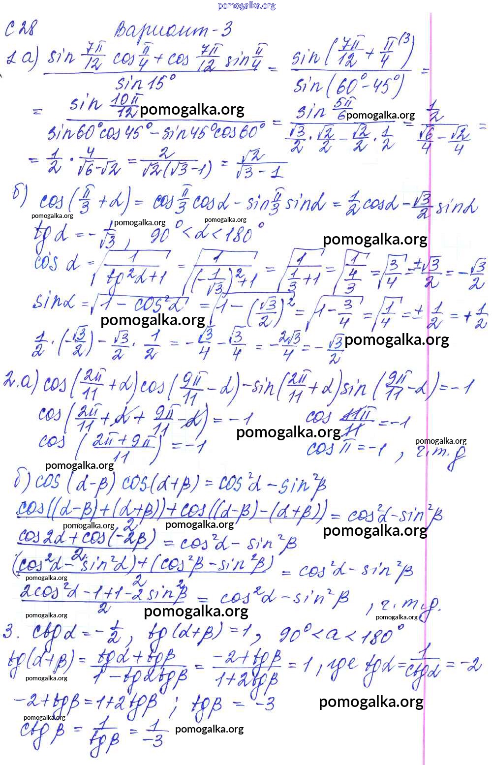 С-30. Формулы суммы и разности тригонометрических функций