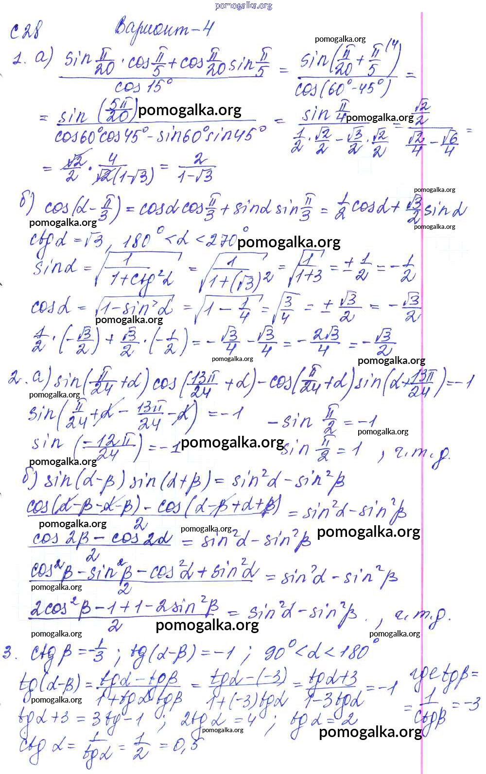 С-30. Формулы суммы и разности тригонометрических функций