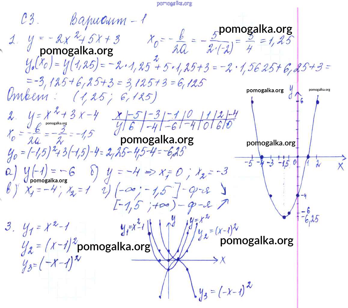 Готовые ответы - Алгебра 9 класс Контрольные и самостоятельные работы по алгебре и геометрии Журавлев С.Г. - с-3 самостоятельная работа Вариант №1
