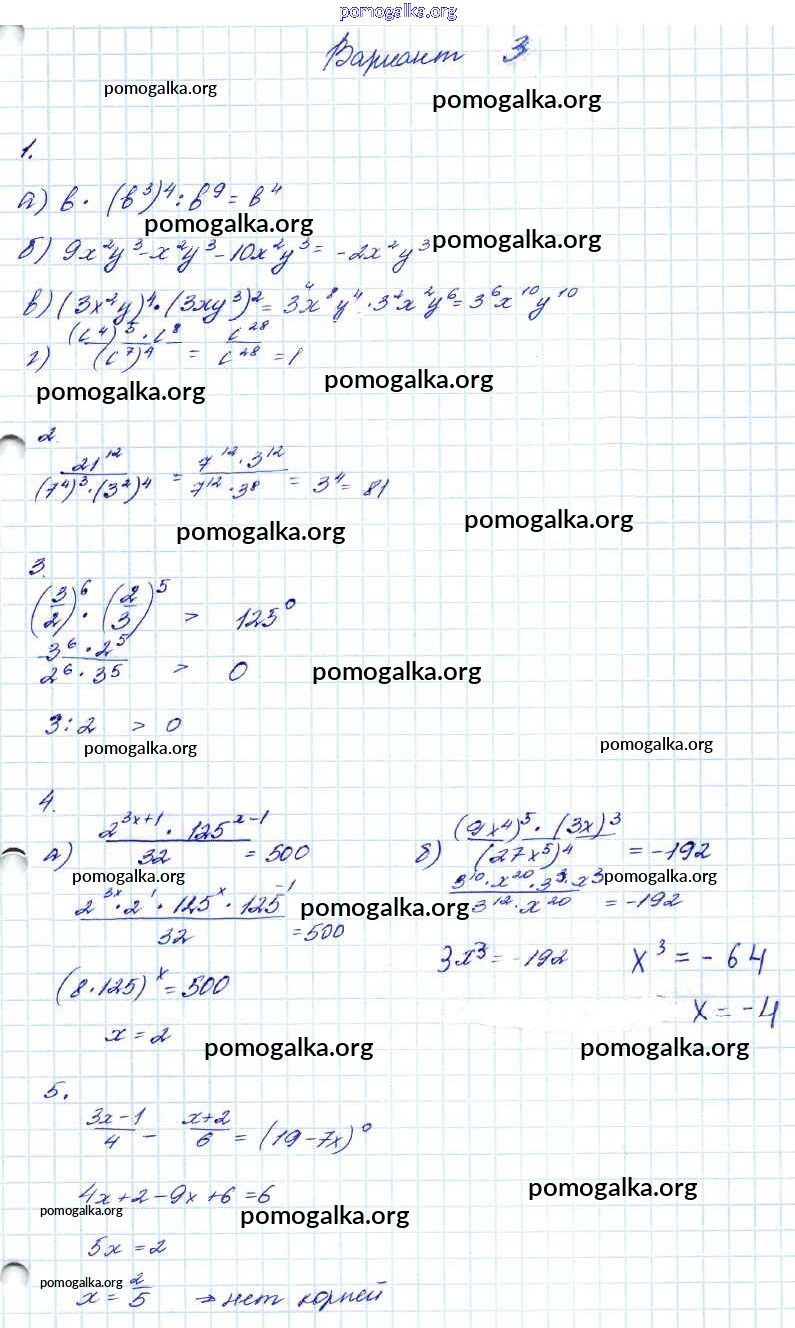 Готовые ответы - Алгебра 7-9 классы контрольные работы Мордкович А.Г. - кр-4. вариант 7 класс 3