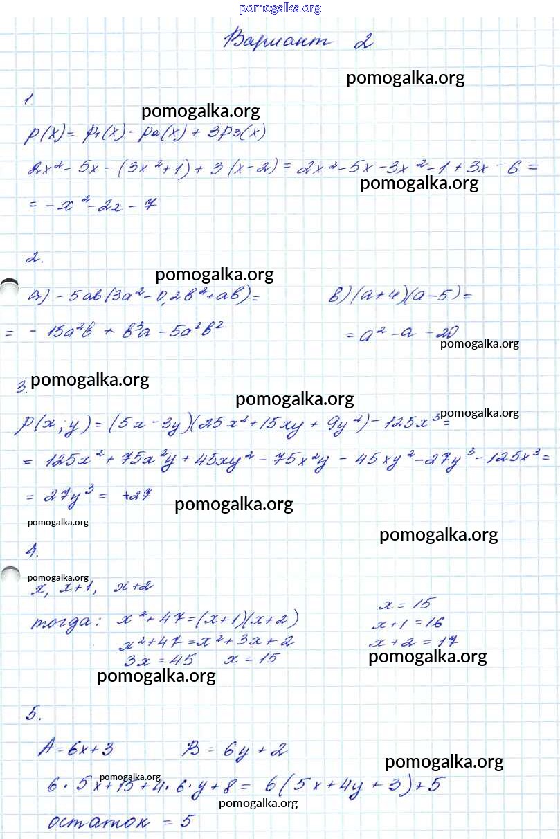 Готовые ответы - Алгебра 7-9 классы контрольные работы Мордкович А.Г. - кр-5. вариант 7 класс 2