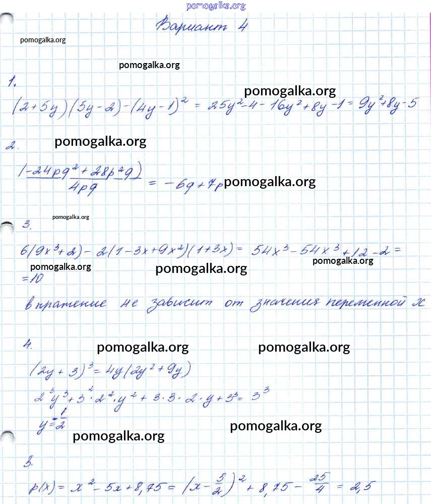 Готовые ответы - Алгебра 7-9 классы контрольные работы Мордкович А.Г. - кр-6. вариант 7 класс 4