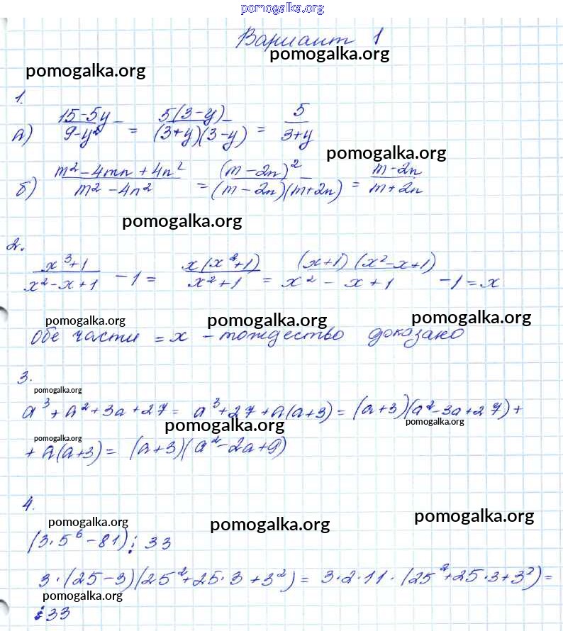Готовые ответы - Алгебра 7-9 классы контрольные работы Мордкович А.Г. - кр-8. вариант 7 класс 1