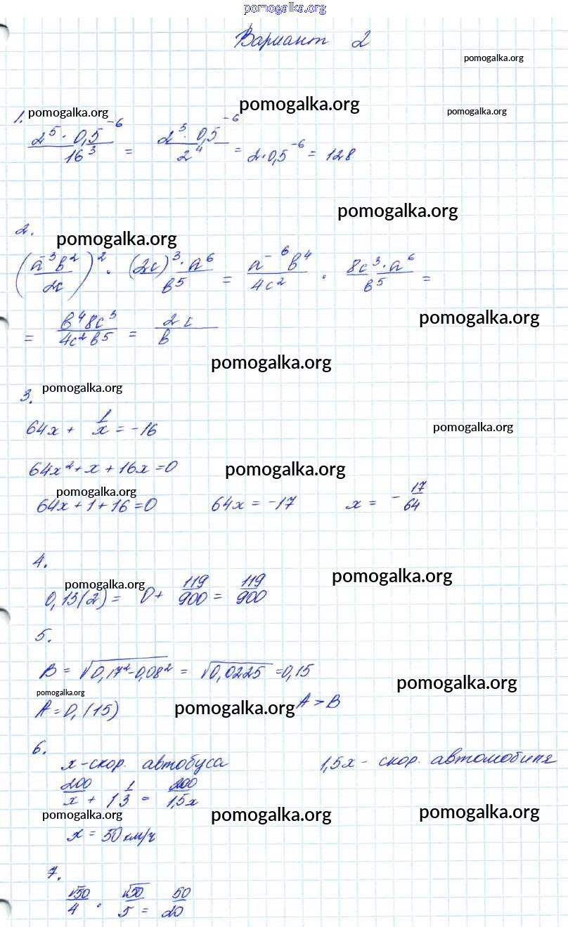 Готовые ответы - Алгебра 7-9 классы контрольные работы Мордкович А.Г. - кр-2. вариант 8 класс 2