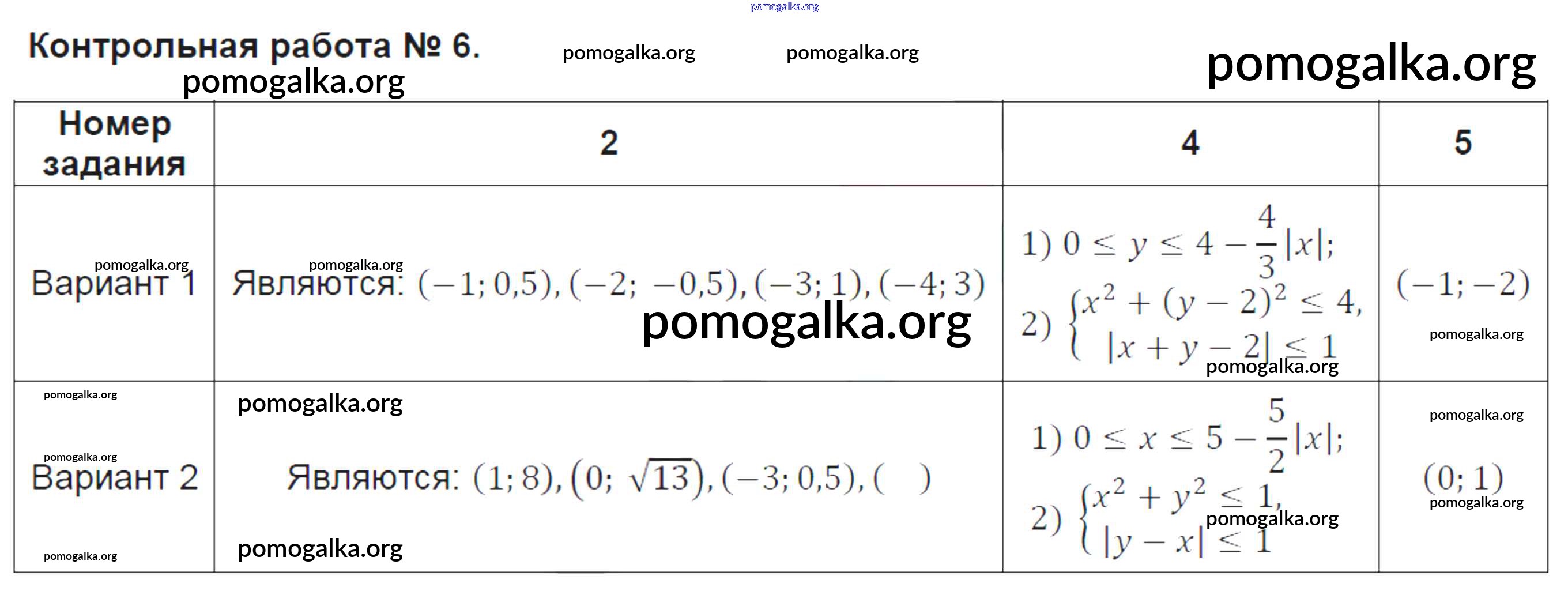 Тест №12. Уравнение с двумя переменными и его график