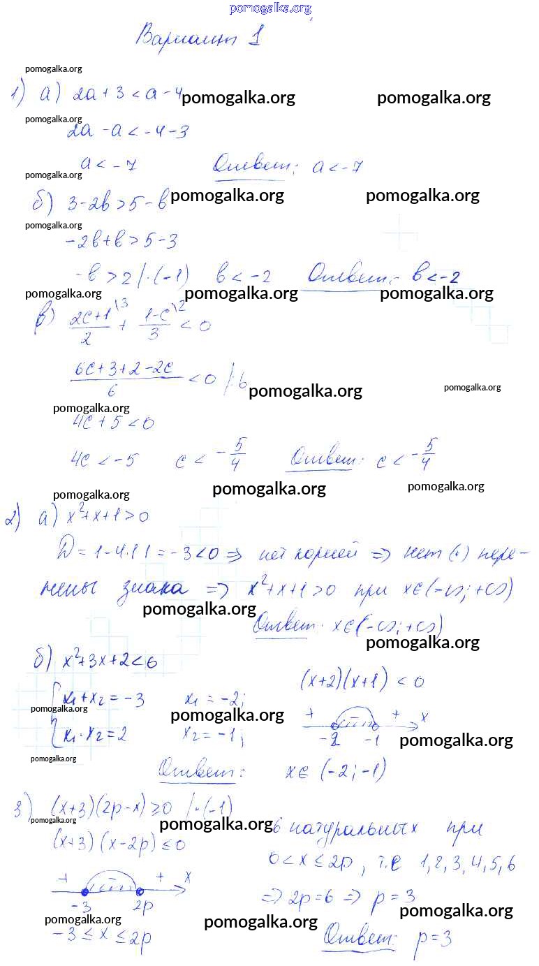 Готовые ответы - Алгебра 9 класс Контрольные и самостоятельные работы Попов М.А. (к уч. Мордковича) - ср-1 самостоятельная работа Вариант 1