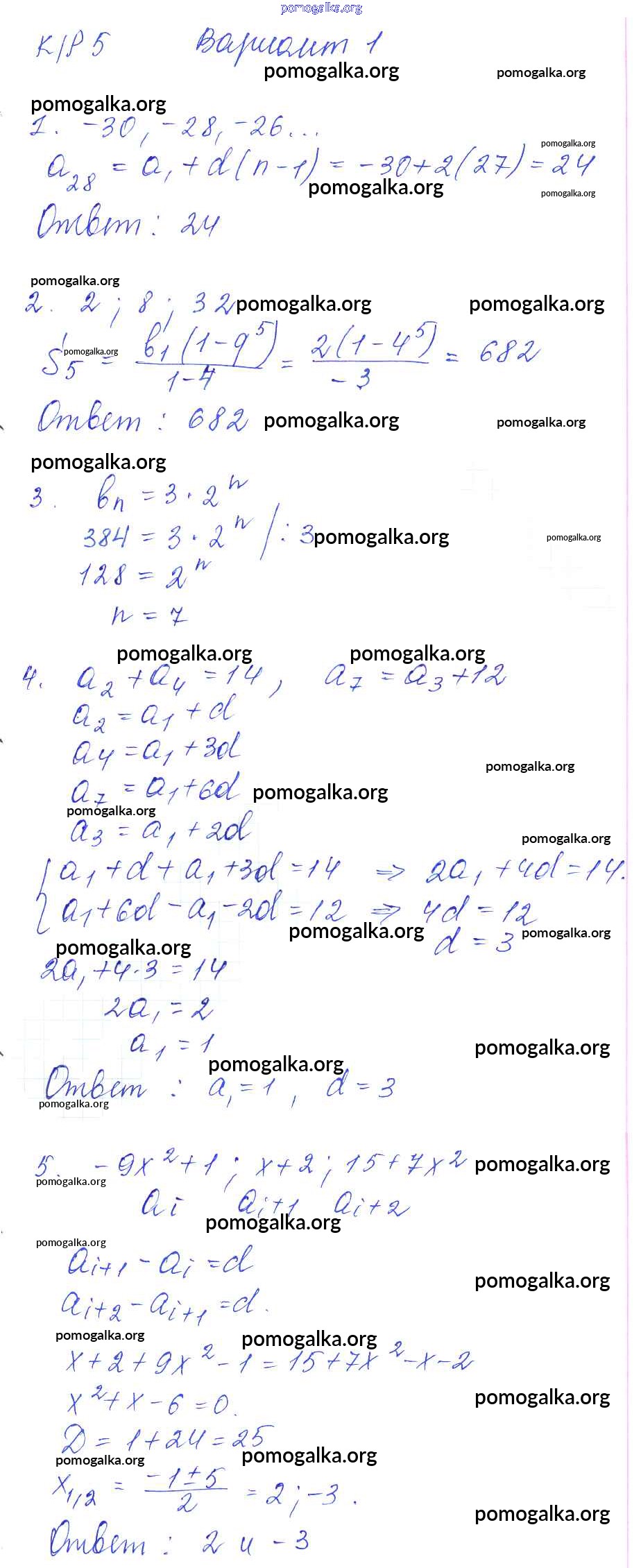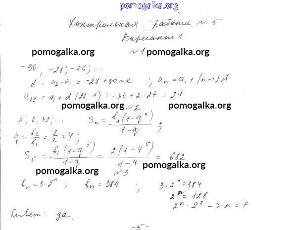 Готовые ответы - Алгебра 9 класс контрольные работы Александрова Л.А. - кр-5 1