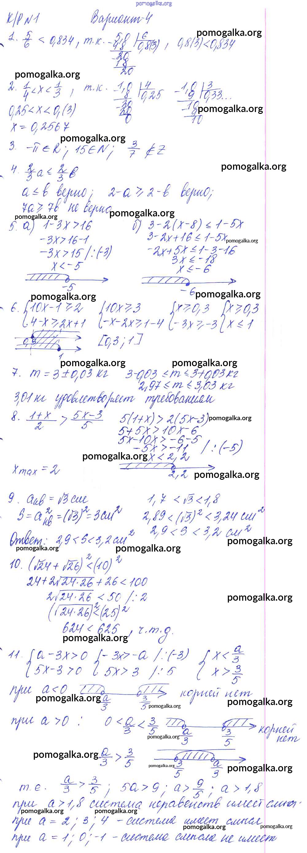 Готовые ответы - Алгебра 9 класс контрольные работы Кузнецова Л.В. - кр-1 4