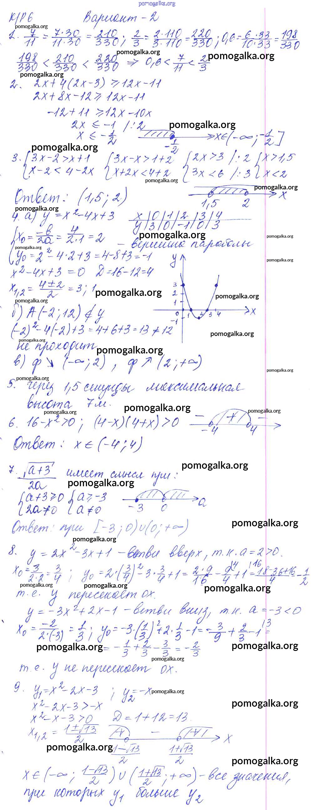 Готовые ответы - Алгебра 9 класс контрольные работы Кузнецова Л.В. - кр-6 2