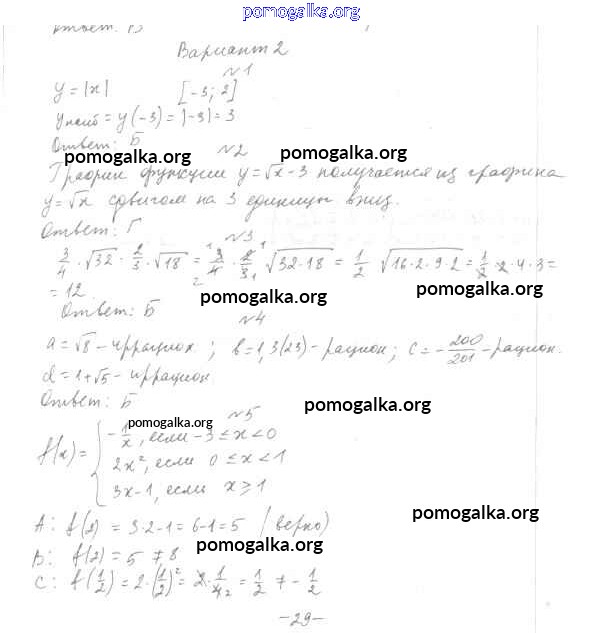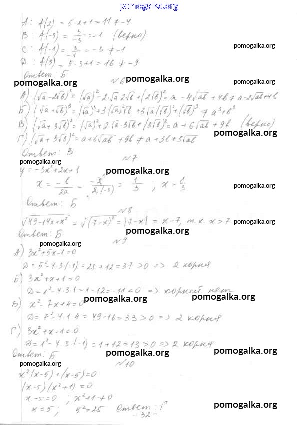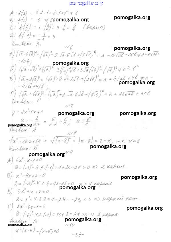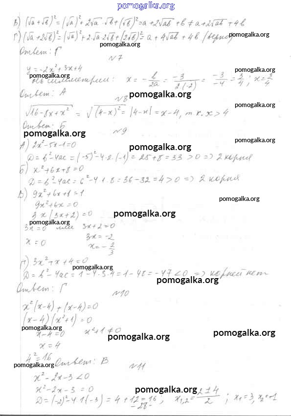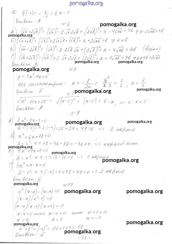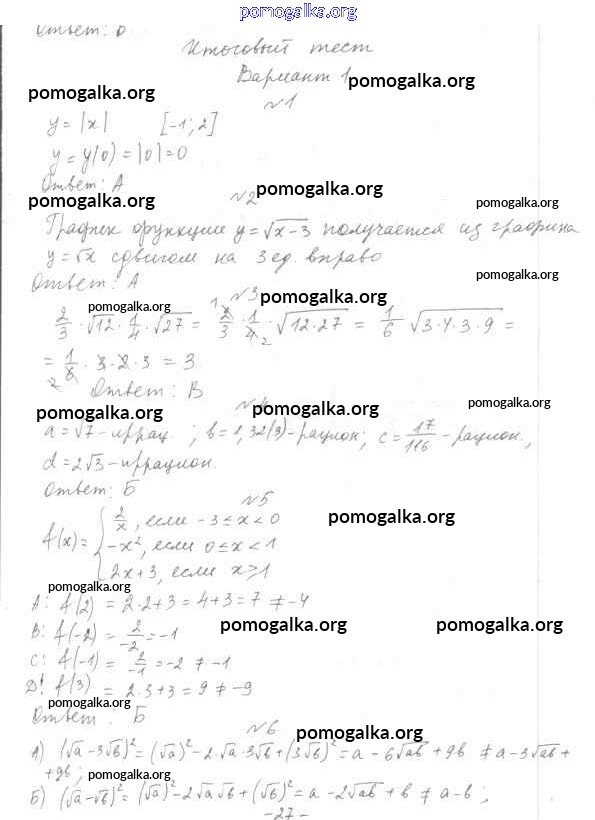 Готовые ответы - Алгебра 7-9 класс тесты Мордкович А.Г. - 8 класс Итоговый тест