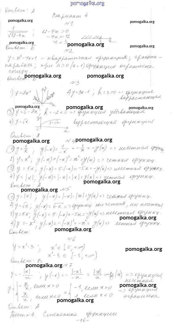 Готовые ответы - Алгебра 7-9 класс тесты Мордкович А.Г. - 9 класс Тест 3