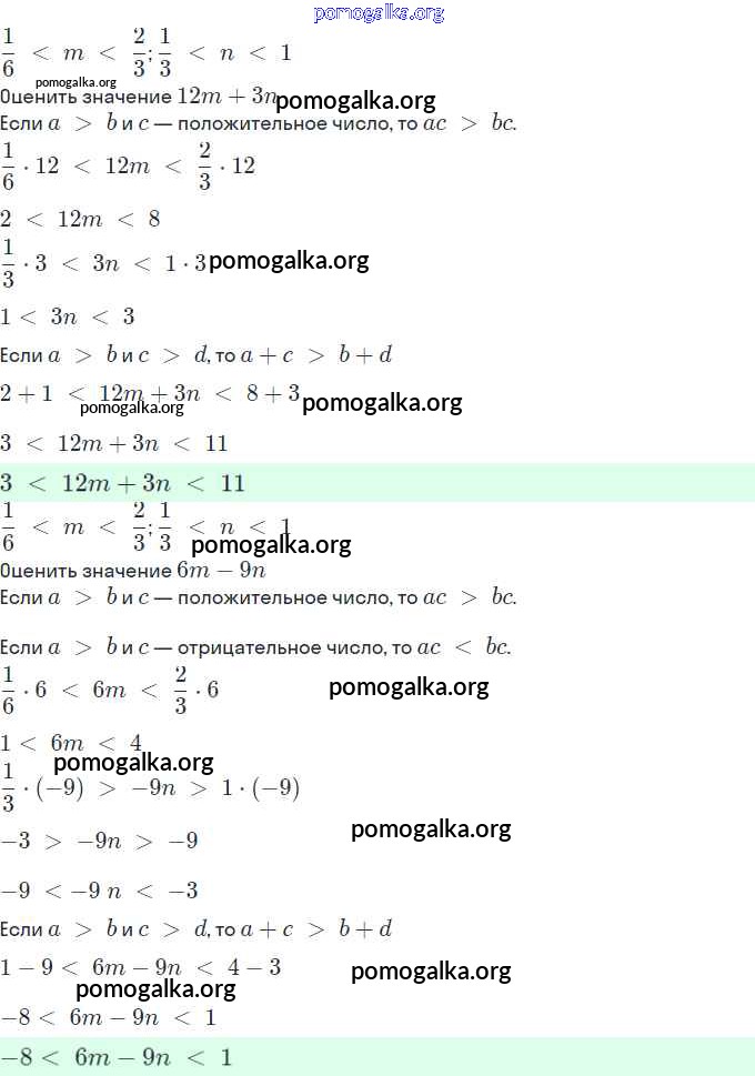 §3. Сложение и умножение числовых неравенств. Оценивание значения выражения. №1-16