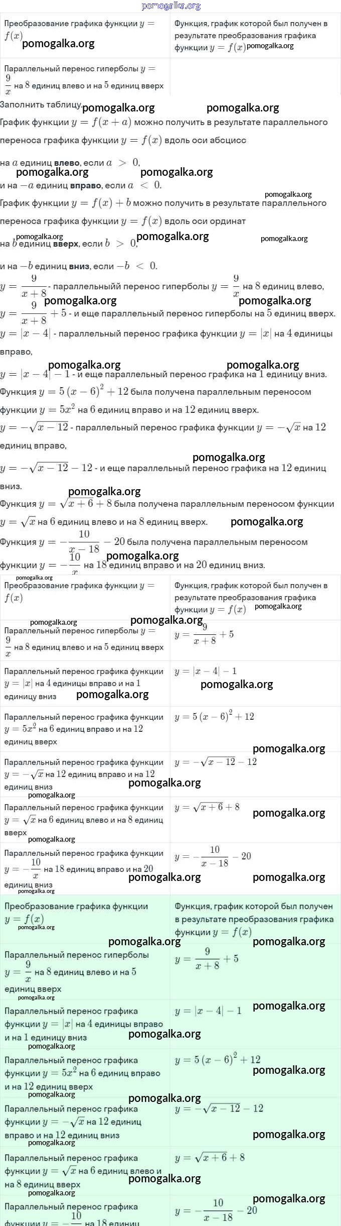§10. Построение графиков функций y=f(x)+b и y=f(x+a). №1-27